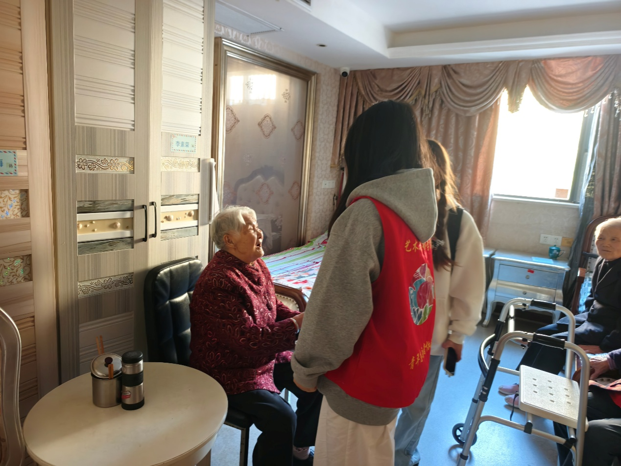 2025年10月22日下午,武汉学院艺术与传媒学院青年志愿者团队怀揣满腔热忱走进康馨养老院,他们以实际行动践行尊老敬老的传统美德,用真诚与关怀陪伴老人们度过了一段温馨时光。