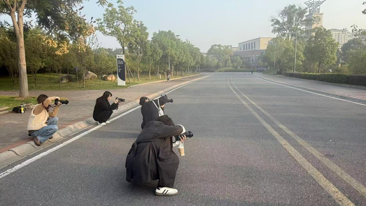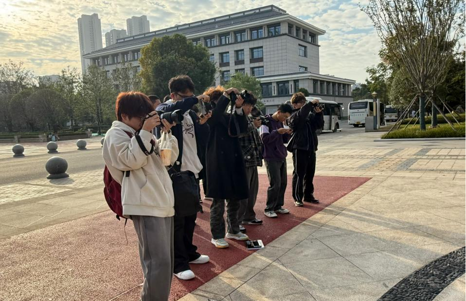 清晨7时30分,天色微亮,影视摄影2501班的同学们已携带相机、三脚架等设备在校园广场集合。在龙银姣老师的指导下,大家按照提前规划的路线分散行动,开启“追光”之旅。