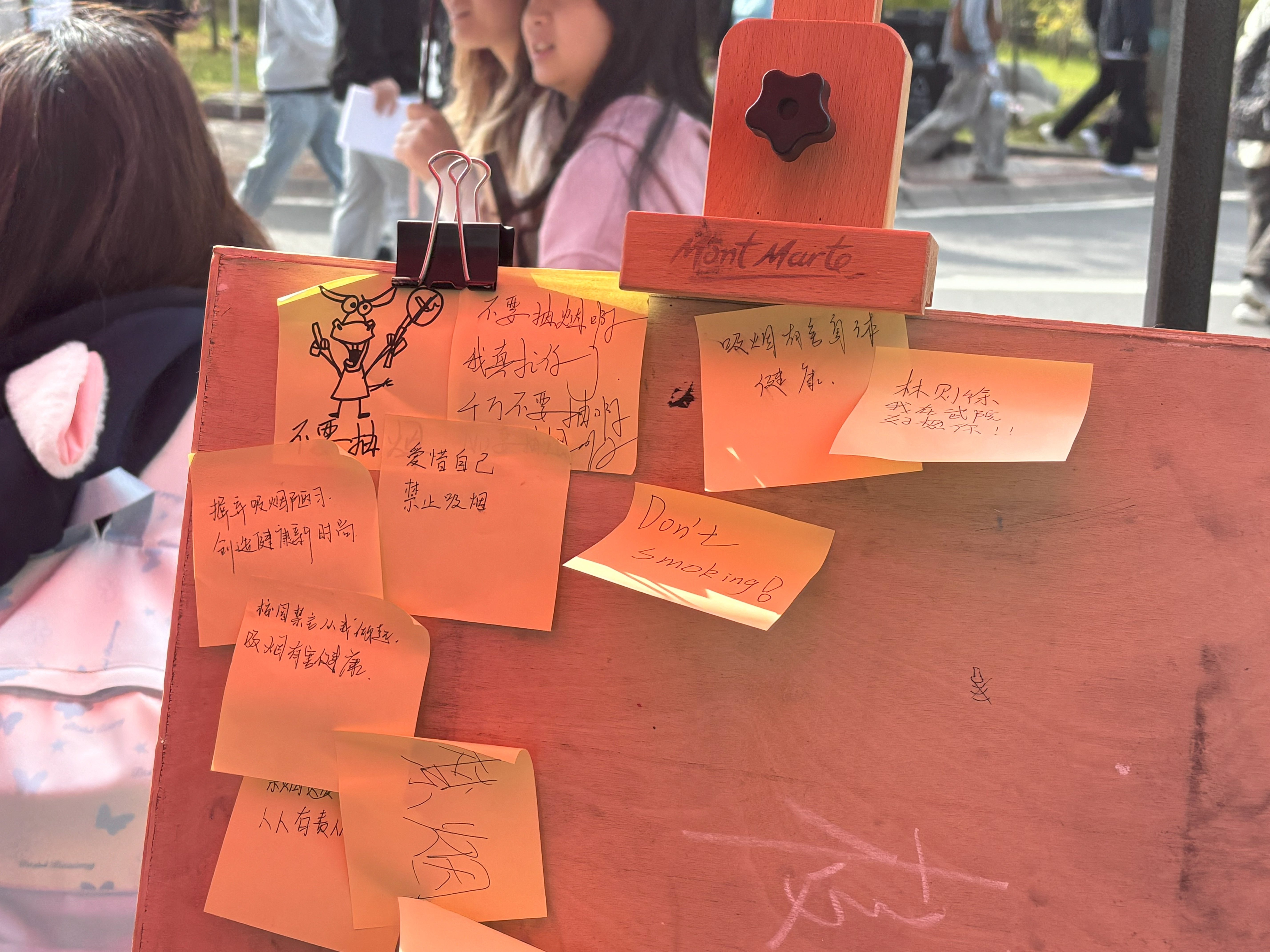 活动高潮,“无烟承诺墙”成为众人瞩目的焦点,大家纷纷在此郑重写下拒烟的誓言,并一一签名,以此方式传达出对健康的坚定承诺。“呼吸挑战”环节中,学子们借助吸管尝试吹起气球,切身感受到了因吸烟而引起的呼吸困难的痛苦,深刻体会到肺部受到损伤后的真实状况。在“拒绝香烟”反应力游戏中,屏幕上快速切换着各种社交场景画面,学子们需在第一时间准确按下拒烟标识卡片。这场紧张有趣的互动不仅考验学子的反应速度,更在潜移默化中锻炼了他们在不同情境下抵制烟草诱惑的应变能力,将拒烟意识内化为一种条件反射。