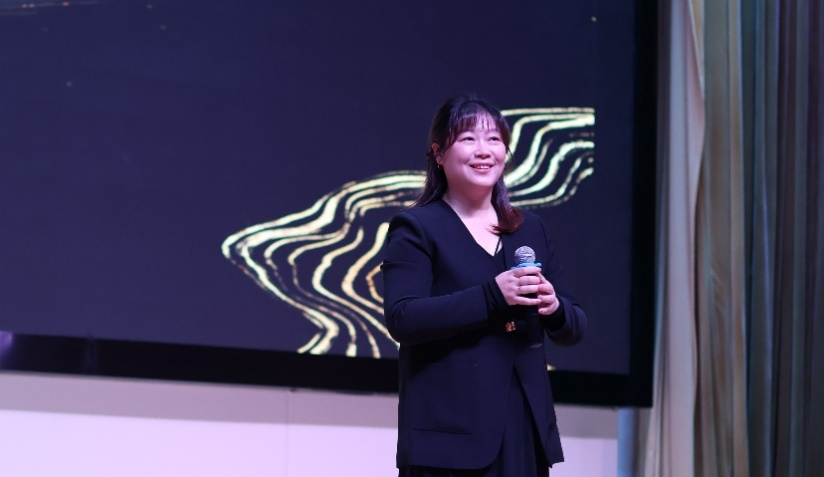伴随着倒计时的声声倒数,开场视频缓缓铺展,将上一届团学组织的奋斗轨迹娓娓道来 —— 从主题活动的创意策划到服务同学的细致落实,从校园文化建设的点滴耕耘到团队协作的温暖瞬间,帧帧画面都凝聚着汗水与荣光,瞬间点燃现场情感共鸣。视频落幕,曹辉书记登台致辞,她首先代表学院向在上一届工作中恪尽职守、无私奉献的团学成员致以最诚挚的感谢,肯定了他们在主题活动创新、文艺风采展示等方面取得的亮眼成绩。“团委学生会是学生自我管理、锤炼本领的重要舞台,更是连接学院与同学的坚实桥梁。”曹书记寄语新一届成员,要传承往届优良作风,以“服务同学、勇于担当”为初心,以创新思维激活工作活力,在凝聚青年力量、彰显艺传特色中勇毅前行,让青春在奉献中绽放光彩,清晰勾勒出“传承与新启”的大会主线。