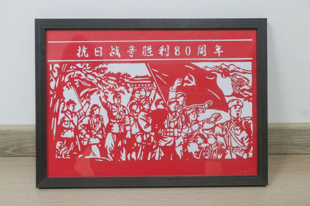 (一等奖:同学们共同完成的纪念抗日战争胜利80周年大型纸雕作品)
