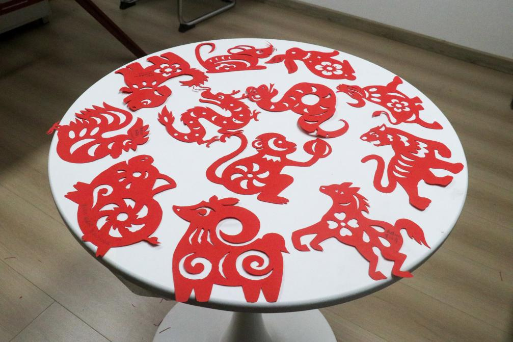 (优秀奖:十二位同学创作的十二生肖剪纸作品)