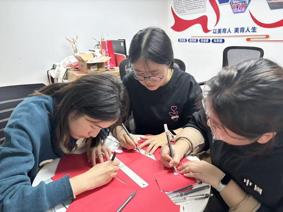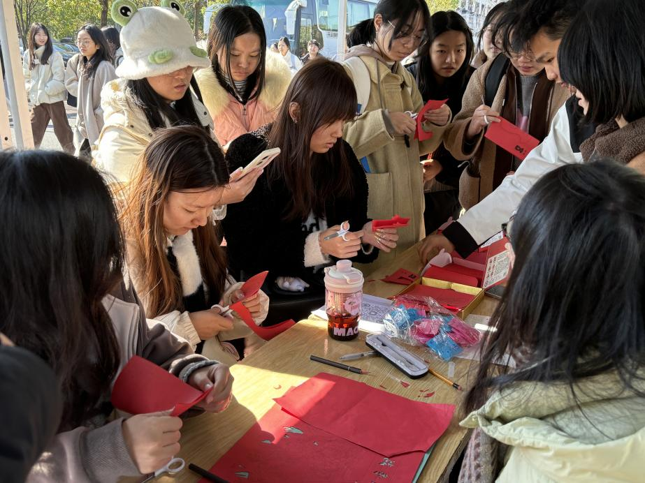 在“大爱中国”系列体验区,工作室成员为同学们准备了大红宣纸、剪刀及纹样模板等材料,大家或复刻寓意吉祥的传统纹样,在对称与留白的构图中体悟东方审美精髓;或融入自己的想法,将青春创意与传统技艺相结合,亲手剪裁出独一无二的作品。