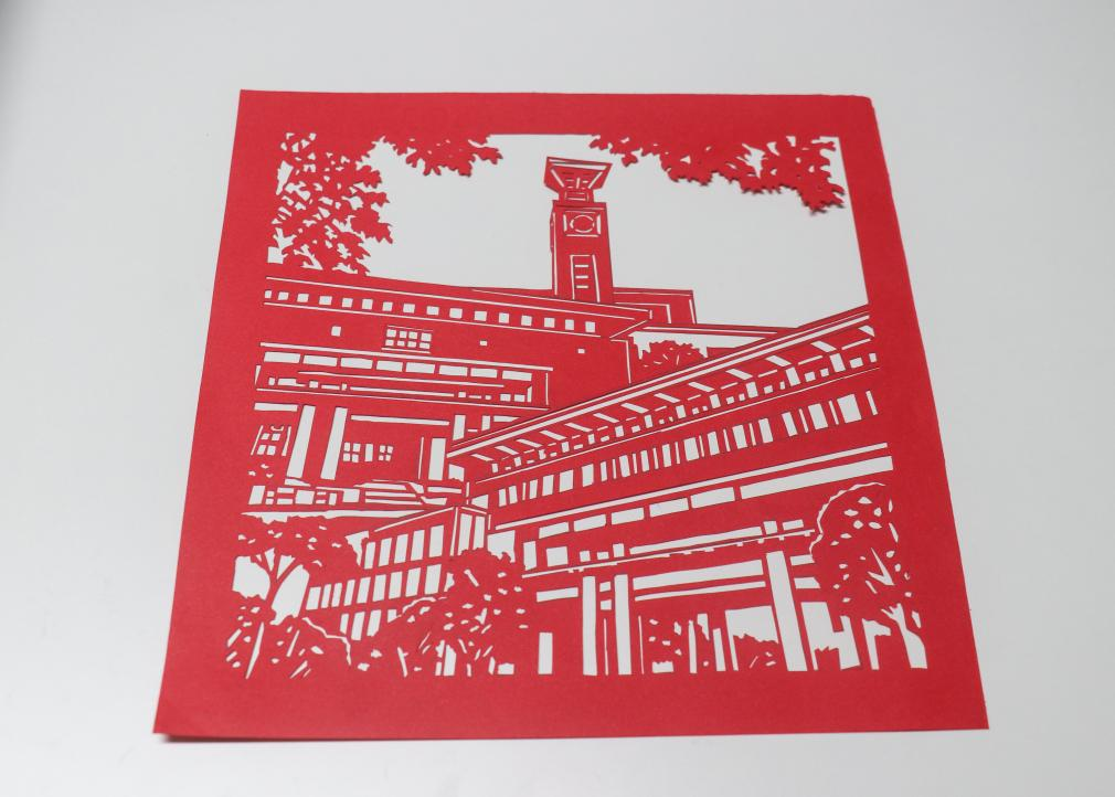 值得关注的是,美“喻”工作室成员还携手打造了两张武汉学院校园风貌剪纸作品。作品以学校教学楼、图书馆等标志性建筑为原型,通过疏密有致的刻痕定格校园景致,将非遗技艺与校园情怀深度融合,成为活动中传递师生对母校热爱的特殊载体。