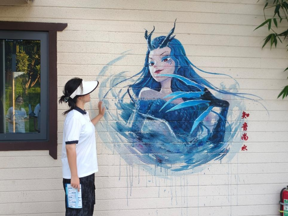 一墙一风景,一笔一童心。团队成员以哪吒主题墙绘点亮村头巷尾,将艺术融入乡土,让素色墙面焕发绚丽光彩。村民驻足赞叹,孩童笑逐颜开,艺术与乡村在此刻深情相拥。