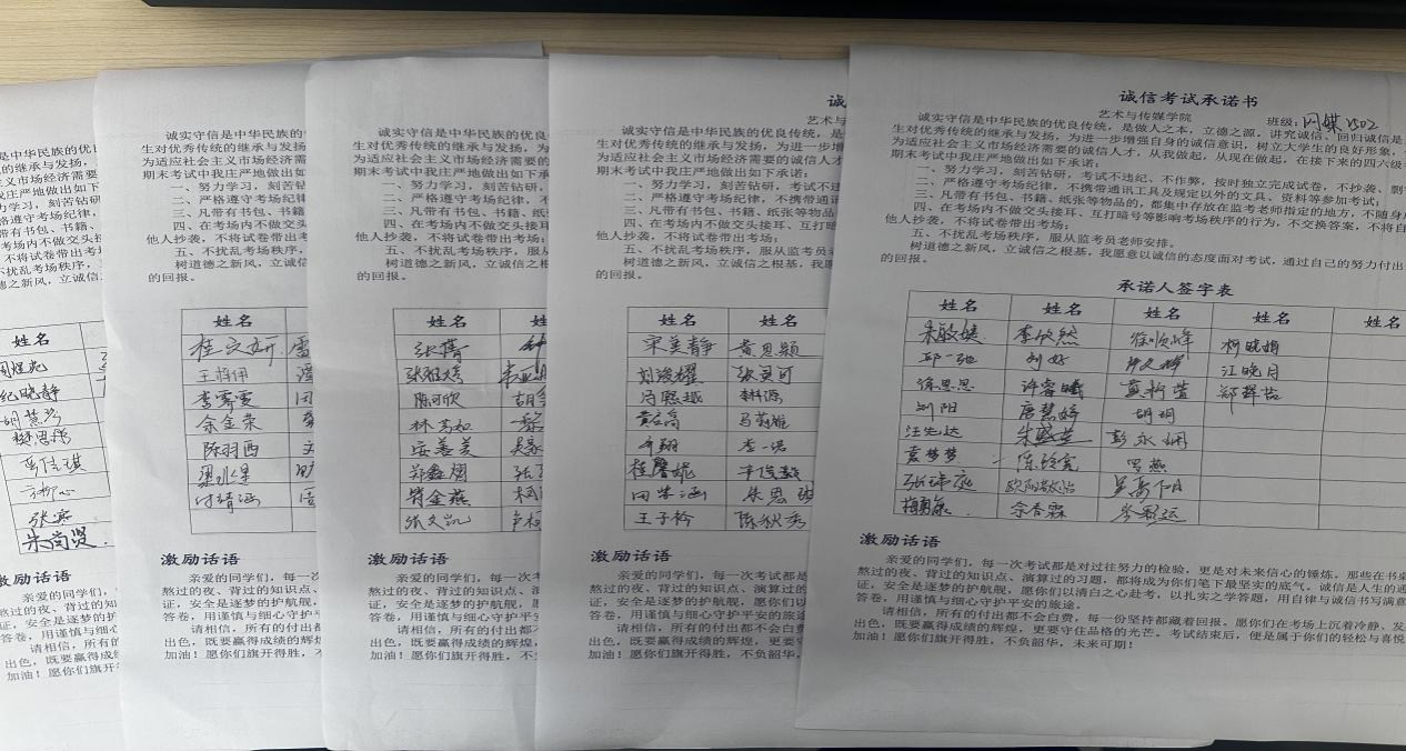 围绕科学复习,杨喻老师细致拆解期末复习方案,送上实用备考小锦囊。她建议学生立足课本夯实基础,结合课堂重点制定个性化复习计划;鼓励同学间互助求教、组队梳理知识点,通过团结协作实现查漏补缺;同时提醒大家兼顾心态调节与劳逸结合,保持规律作息和健康状态,以饱满精力投入备考。诚信应考是本次班会的核心重点。杨喻老师详细解读《武汉学院考试违纪处理办法》,结合真实案例深入剖析考试舞弊对个人学业信誉、长远发展的严重危害,随后组织全体学生签署诚信考试承诺书,让学生深刻认识到诚信考试的重要性。此外,她还针对近期学生请假流程、第二课堂参与等共性问题作出提醒,希望大家合理表达诉求,始终将学习放在首位,在参与实践活动增长见识的同时,绝不以放弃课程为代价,确保学业进度不受影响。