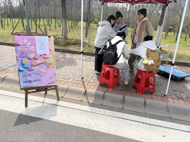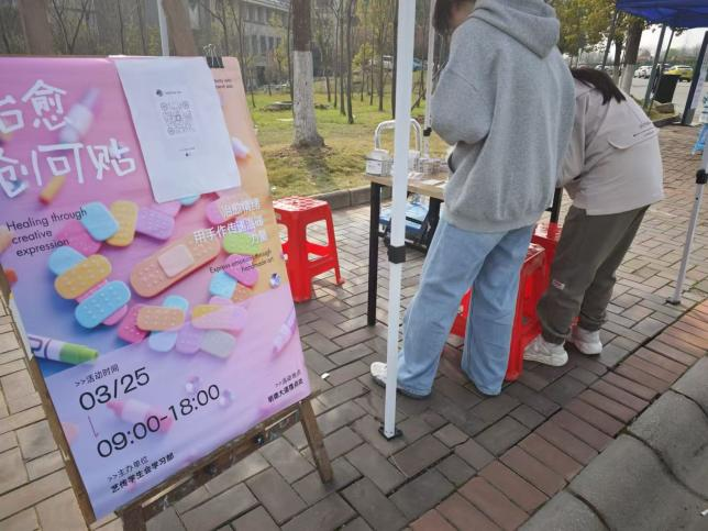 为呵护学生心理健康,舒缓学业与生活压力,以艺术创作传递温暖治愈力量,2026年3月25日9:00—18:00,艺术与传媒学院学生会学习部在校园明德大道摆点处,面向全校学生成功举办“治愈创可贴”心理创意活动。本次活动以手工创作为载体,将心理关怀与美育实践深度融合,吸引众多同学踊跃参与,在校园内营造出温暖、积极、治愈的良好氛围。