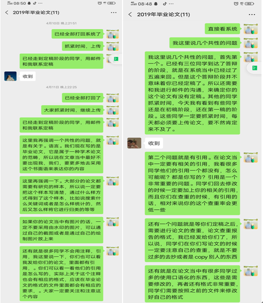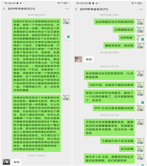 由于受到疫情的影响,今年毕业论文指导、写作和答辩的工作注定不平凡,全线上的指导操作,无论是对学生还是对老师来说,都是巨大的挑战,在老师和学生的共同努力下,在规定时间内按期完成了各项任务,取得了预期的效果,达到了预期目的。反审整个论文指导过程,有如下心得体会: