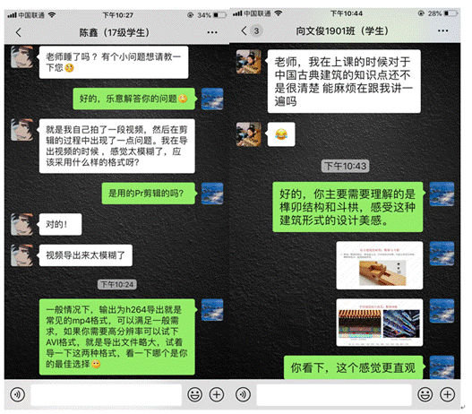 为了保证线上与线下的教学质量,开展线上的“师生互动、生生互动”环节,师生通过语音通话和课堂文字,主要针对课程中重要的知识点进行讨论。她说“:这种方式会让学生有全新的体验感,也激发了他们的学习热情。”每次下课后,彭老师都会细心询问学生的困惑,遇到不懂的问题,她会私信耐心讲解多遍,直到学生清楚明白。
