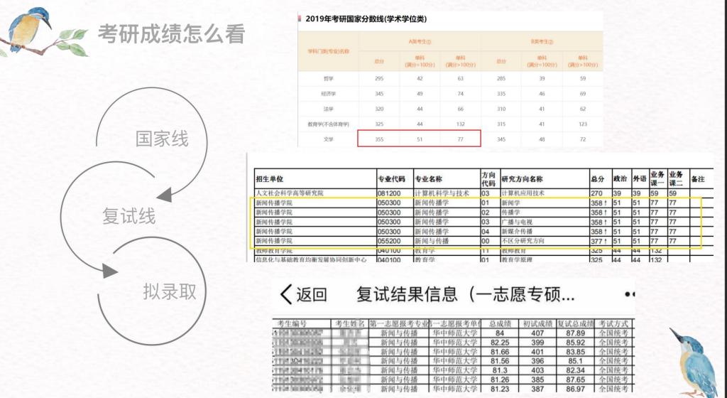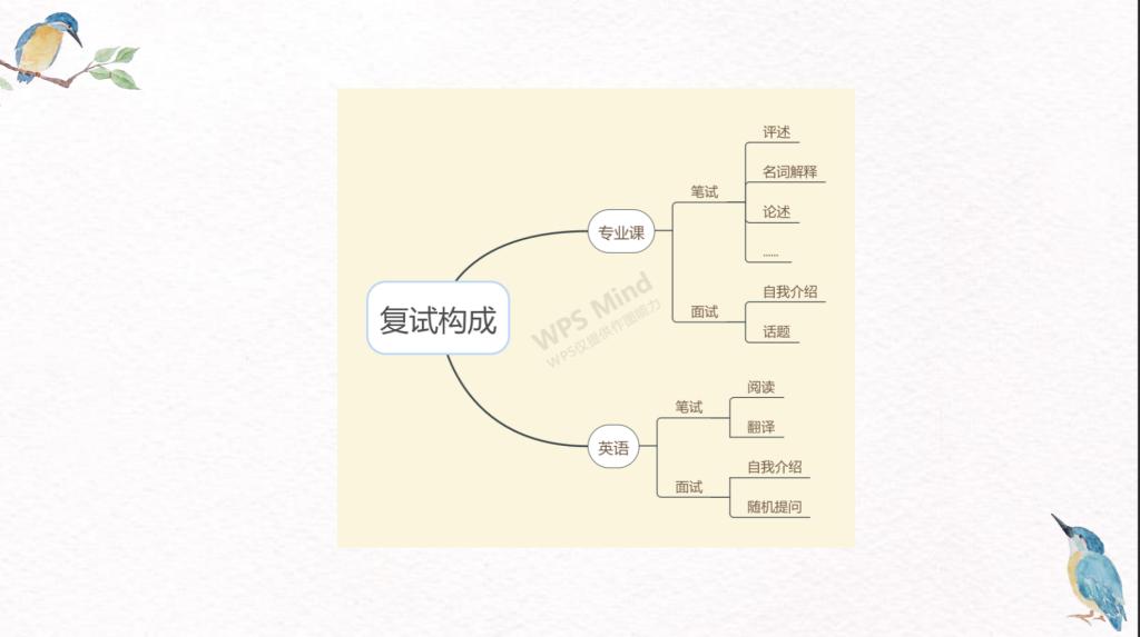 交流会伊始,余佳瑾学姐从考研复试准备切入分享,她从考研成绩怎么看、复试构成、简历制作细则、推荐书目等多个方面以华中师范大学为例为在线众人详细讲述了复试的过程、分享了自身的经验。