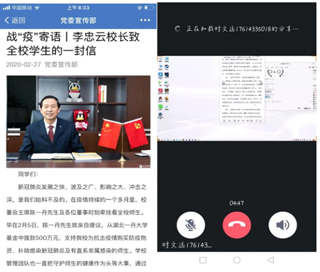 会议伊始,各班辅导员向同学们分享了《战“疫”寄语|李忠云校长致全校学生的一封信》,在信中李忠云校长表达了对全校师生健康问题和线上学习情况的关心,并提出了四点建议:1.坚持科学防范,当好自身健康的第一责任人;2.体验无价亲情,在心灵的港湾中成长成熟;3.停课不停学,居家坚持学与思;4.坚持战“疫”强志,增强国家情怀和使命担当。正如李校长所言:“疫情阻止了我们的社会实践,隔断了我们的交往空间,但让我们有更多的时间在‘家’这个心灵的港湾里体验无价的亲情。
