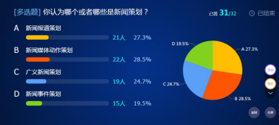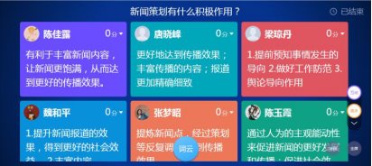 在谢光玉老师的线上课堂中,学生积极踊跃参与投票,讨论,积极回答问题。能够有如此良好的线上课堂范围并不是没有原因的,在此之前,艺术与传媒学院便已经建立了“翻转课堂”的教学团队。今年寒假谢光玉老师主讲的《数据新闻实务》在大学MOOC平台开课,“翻转课堂”教学团队全程进行后台服务,逐步摸索线上线下混合式教学方法。谢光玉老师说道:“我们这个团队一直在进行教学改革,将信息化教学手段融入教学活动中,提升教学质量,积极推动“金课”建设。”