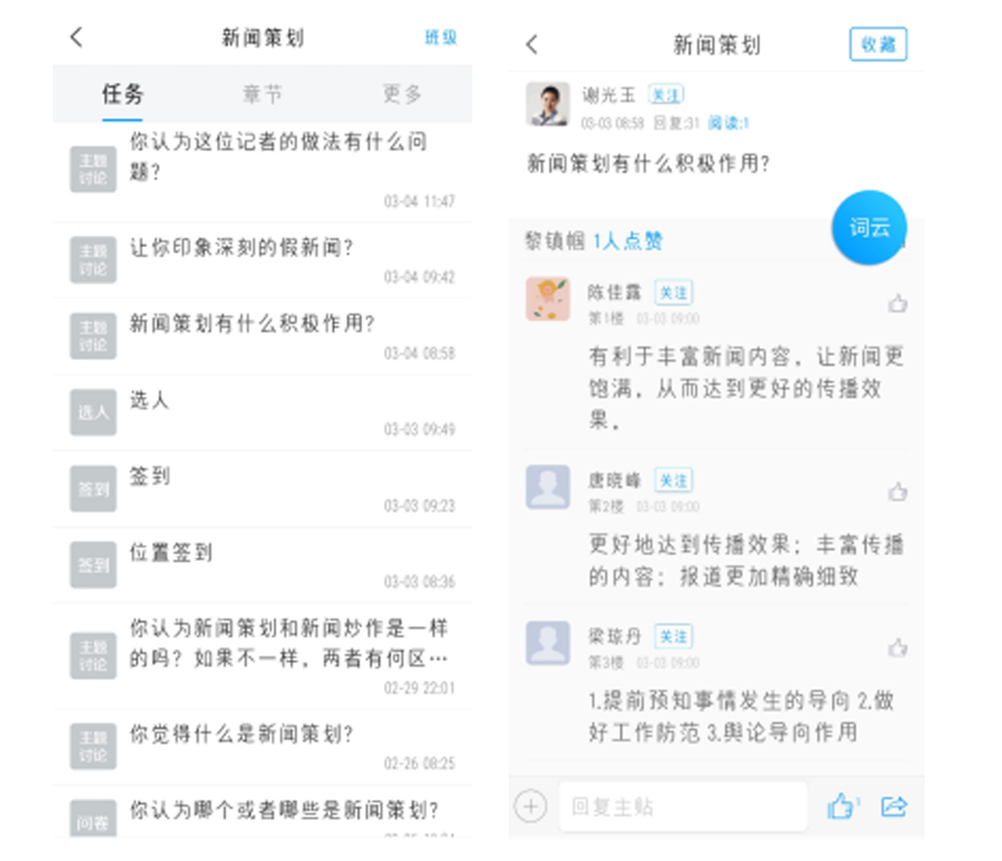 谢光玉老师采用“QQ群课堂+超星学习通”的教学模式,利用QQ群课堂进行直播,但是所有的课堂互动都放在超星学习通来进行,在超星平台建课之初,谢老师将教学资料、电子版教材、案例等放入平台资料库,还建立了题库增强学生对知识点的掌握。在开课之前,谢光玉老师便在超星学习通上留下相关讨论问题,以启发学生思维。谢光玉老师表示:“主题讨论是特别能够启发学生思维,让他们带着问题来上课,更有参与感。”