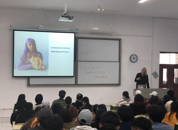 2019年4月11日14:00在5号学院楼5201教室,来自英国创意艺术大学专家Debra Allman(黛布拉•奥尔曼)为武汉学院艺术设计系师生带来一场精彩的学术讲座。她是英国创意艺术大学工艺设计学院珠宝专业课程负责人、珠宝与银器制作学科主任。毕业于英国皇家艺术学院(RCA)。其优秀作品曾在维多利亚和阿尔伯特博物馆、巴黎蓬皮杜艺术中心等多处展出。拥有近20年教学经验,并一直致力于珠宝艺术的推广与持续发展。