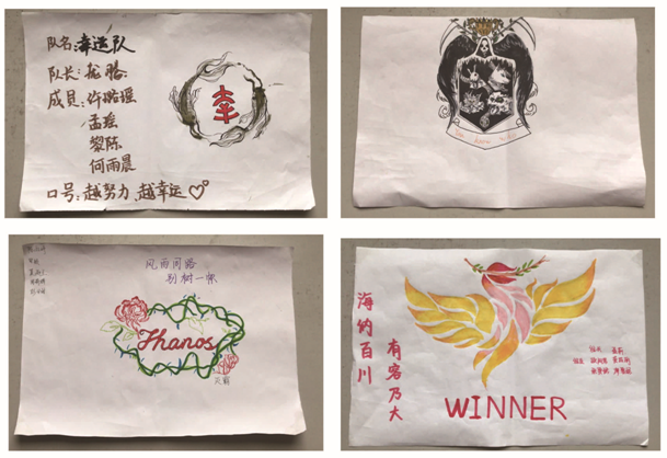 每个班分的各个小组分别由队长的带领下,明确成员的分工,合力构思与实践方案,设计出自己的团队的队徽、口号等,每个团队设计的logo皆独一无二、别出心裁。