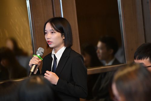 在傍晚的交流晚宴环节中,王敏再就优衣库新媒体运营方面的问题与优衣库人事经理张天龙先生进行了深度交流。武汉学院另一获奖者胡家瑞同学也积极就教育改革等问题与潘宁先生展开了讨论,展现了我校大学生的风采。