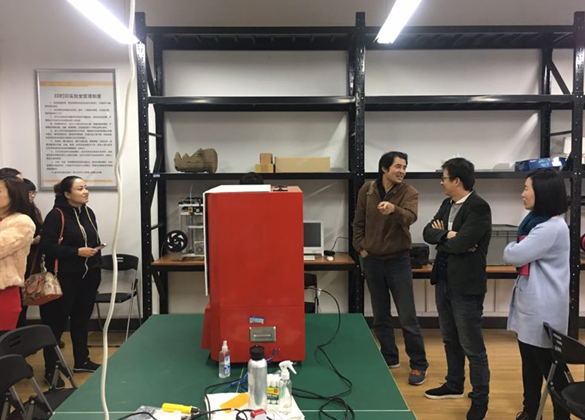 会后,王海文副院长带领我系教师参观了艺术设计学院楼的毕业设计展区,并参观了实验室。