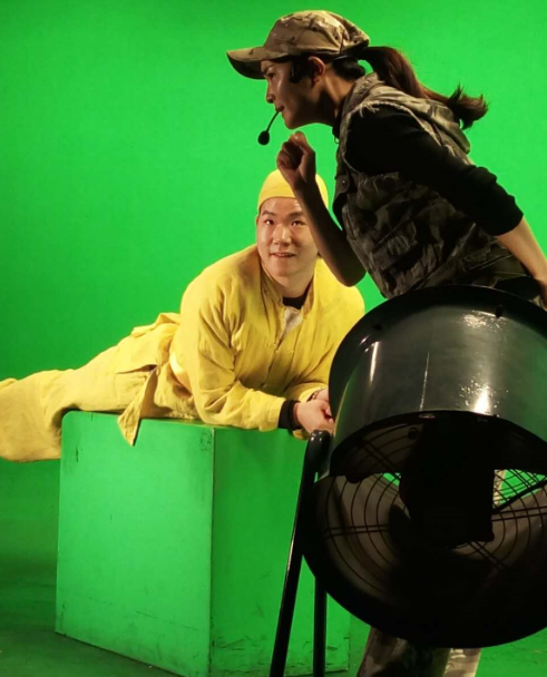 其中1305班的黄磊同学有幸参与了一场数字后期特效的现场实践,他在其中饰演韦小宝和超人两个角色,表演结束得到了现场导演的夸奖。