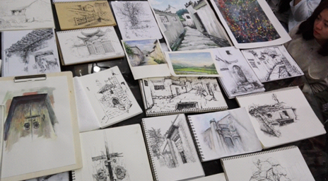 4月11日下午写生队伍到达了目的地,经过了一晚的休整,师生们第二天就开始了写生教学活动,之后的三天里,写生时的同学们都认真作画,由于学生选点比较散,不容易照顾到学生的安全,但是各带队老师也都认真负责,在写生进行中会时常来监督和指导教学,老师还给学生做示范,对学生进行辅导。之后我们分别到达了关麓,南屏,屛山,虽然安徽这几天都在下雨,但是依然不妨碍学生的激情,依然风雨无阻到各个地方写生。