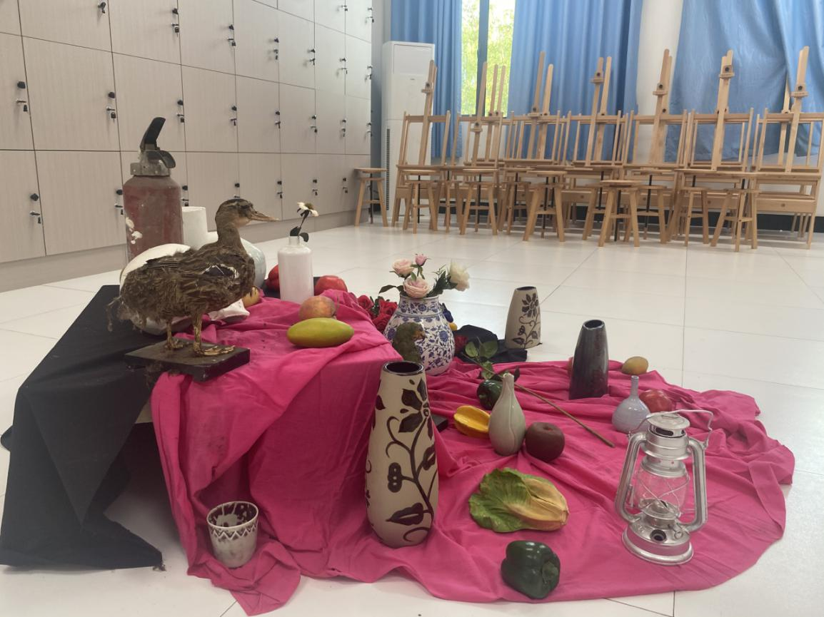 在中秋假期后将迎来2021级新生的第一课,老师们已经将静物和各种参考资料放置整齐,营造出了专业的画室氛围,只为给新生一个全新的、浓郁的教学环境和新的开端。