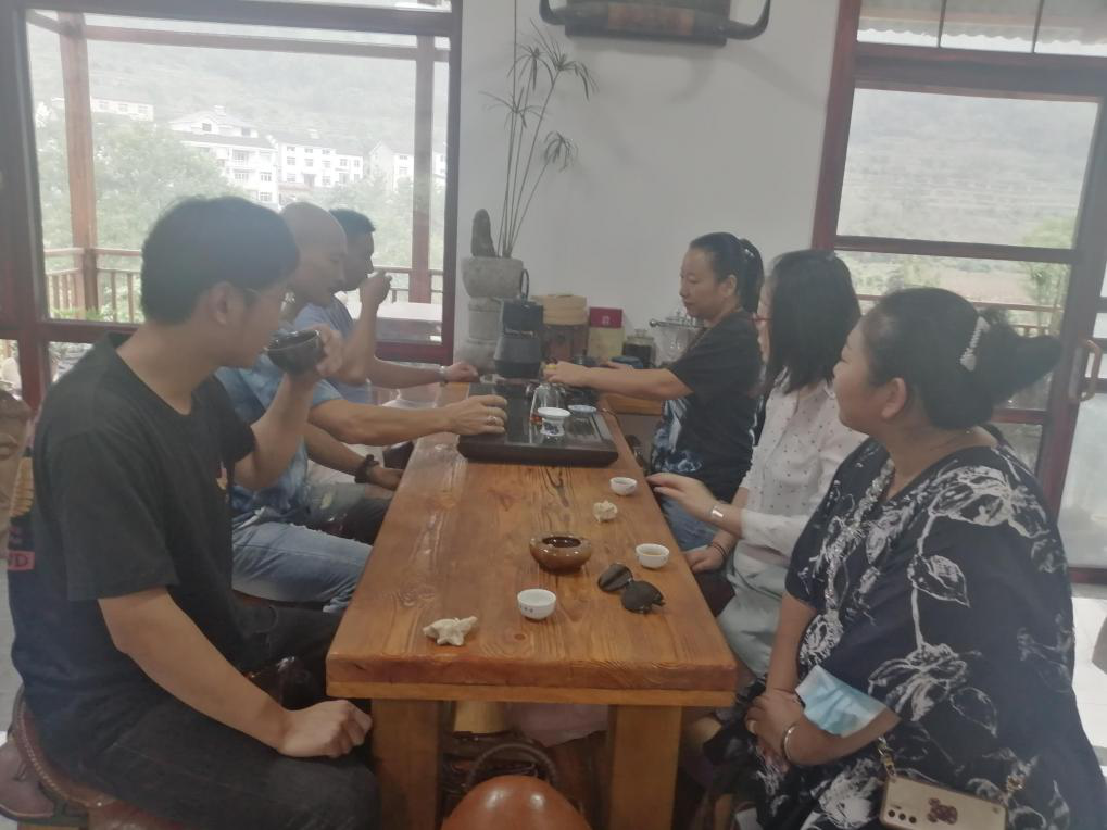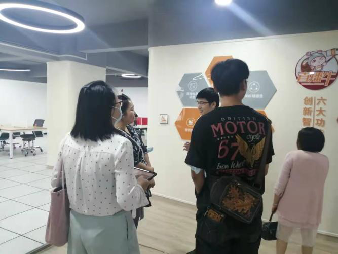 (张兴老师带团队成员与基地负责人阮总进行项目洽谈)