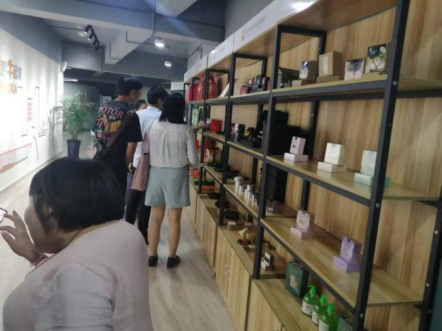 来到基地的四楼,映入眼帘的就是整个基地,所有团队的产品展示区域,这里有纯手工制作的手工皂,有着高端定制的珠宝首饰,也有着拥有着国家专利的助眠枕,这里的每一件产品都非常具有代表性,其中让人印象最为深刻的就是颈椎治疗枕,这款枕头的发明人是一位残疾人,因为他的颈椎一直不好,自己本身是一名经验丰富的裁缝,于是自己设计改良制作出了这款产品,不仅将自己的颈椎病治好了,同时开发了这款具有专利性质的颈椎治疗枕。同时,为了跟上时代的节奏,他的团队里面每天都会有人直播,带货销量在基地中也是名列前茅,直到现在他还在不断地进行着产品的升级。