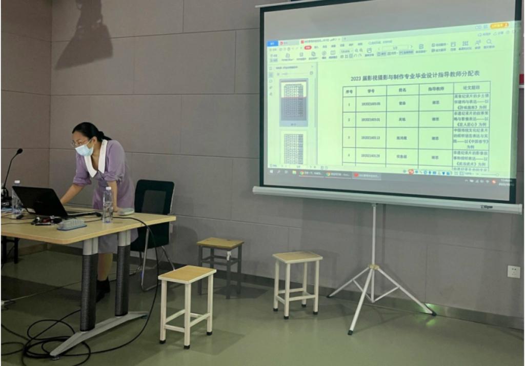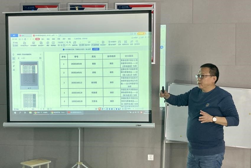谢思老师首先针对影视摄影与制作专业近两届毕业生的本科毕业论文(设计)进行了回顾,对于同学们普遍出现的一些问题进行了总结和分析,对于今年初次承担指导任务的老师,谢思老师从毕业论文(设计)选题的范围大小、选题的实际应用价值、选题的创新性、选题是否符合影视摄影与制作专业培养要求等方面进行了讲解。