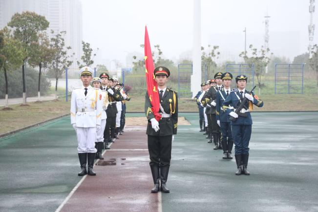 迎着东方的晨曦,怀着赤诚的敬意,国旗护卫队迈着整齐有力的步伐,护送国旗入场。伴随着斗志昂扬的国歌,鲜艳的五星红旗在晨光中随风飘扬,好似一团火焰,映红了天地,温暖了人心。