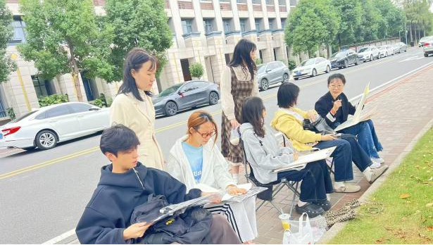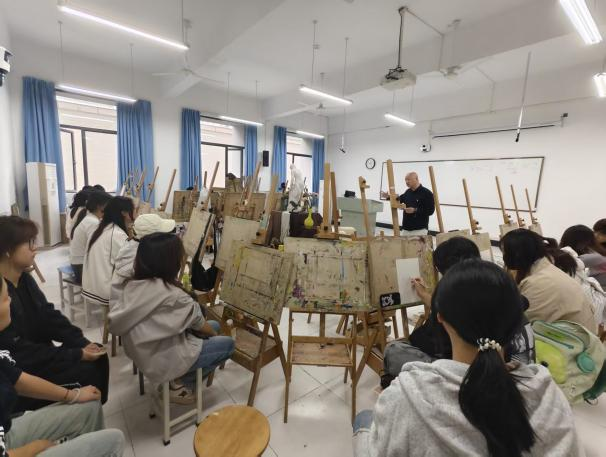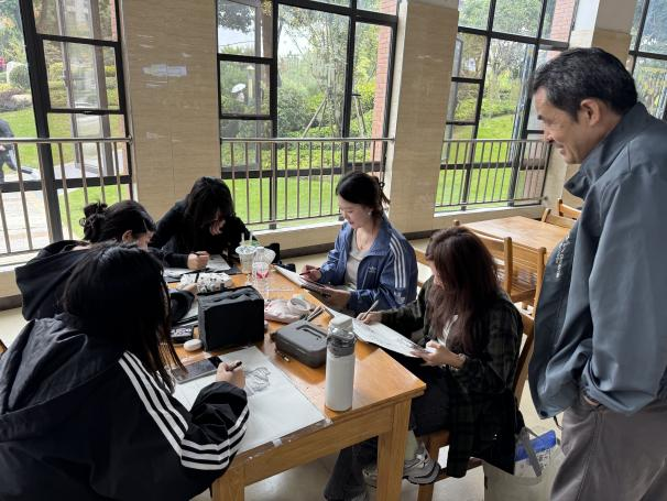 在写生过程中,教师们穿梭于学生之间,耐心地观察每位同学的创作过程,并给予适当的指导,帮助学生更好地理解如何表现画面。学生们认真聆听,不时点头表示理解,每位同学都从中获得了启发。整个过程中,师生之间的互动自然而融洽,营造出一种积极的学习氛围。