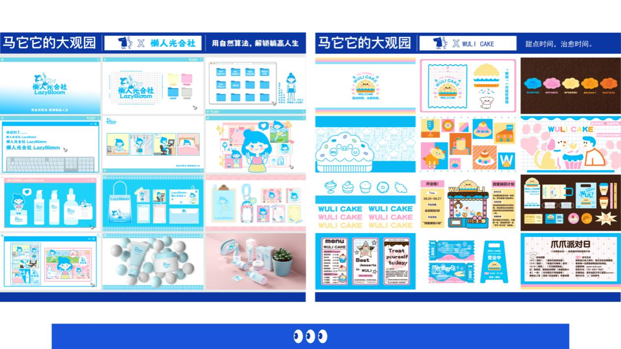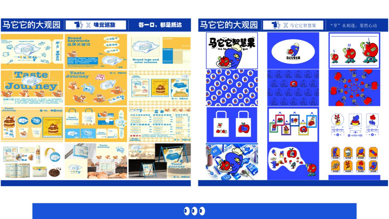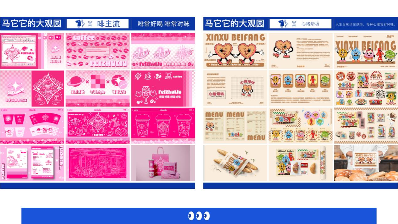 2025年10月,为深化艺术与传媒学院视觉传达设计专业品牌设计课程的教学体系,进一步加强核心特色课程的建设,在李东航老师讲授的《品牌设计》+《商业调研与实践》的课程中,结合产教融合模式,与武汉本土新锐IP——“马它它”进行联名创作,展开了一场以“马它它的大观园”为主题的课程实践,视觉传达设计2203班的作品呈现出一派新锐时尚的创意体验。