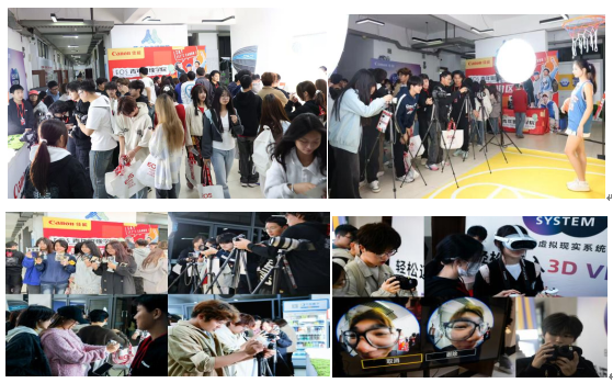 佳能青年影像学院活动高校站落户武汉学院艺术与传媒学院,11月3日周一晚6点—9点在武汉学院艺术与传媒学院大厅主办,分享会在热烈的器材体验中拉开序幕。同学们使用主办方提供的多款佳能相机,有的专注拍摄现场模特的动态神情和模特与背景之间碰撞摩擦出的活力;有的精心构图捕捉静物细节,还有的体验VR摄影利用鱼眼镜头拍摄所带来的沉浸式视角;即时照片打印区,同学们手持刚出炉的照片互相品评,在实践中感受不同器材的成像特点。