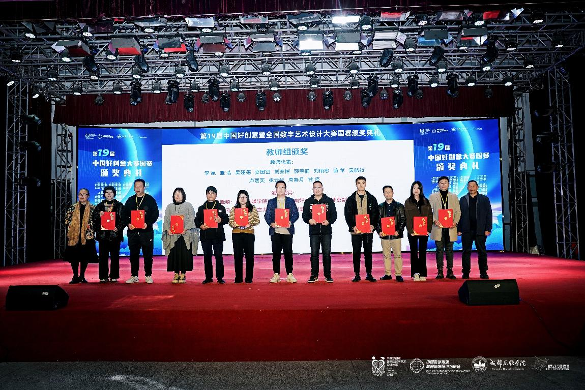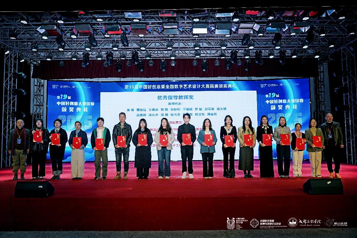 论坛结束后,第19届中国好创意暨全国数字艺术设计大赛国赛颁奖典礼隆重举行。我院在本届大赛中表现优异,共获国家级奖项8项、省级奖项24项,4位教师荣获“优秀指导教师”称号。周春月老师作为获奖教师代表上台领奖,其摄影作品《江城矩阵》荣获全国二等奖。这一成绩不仅体现了教师个人的专业能力与教学实效,更是艺术与传媒学院长期以来践行“以赛促教、以赛促学”、专注高素质应用型人才培养理念的生动诠释。