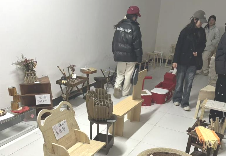 本次展览集中呈现四个班学生的课程实践成果,以家具造型设计、空间陈设搭配为核心,展现了同学们在功能与美学、理论与实践中的探索成果,吸引大家前来参观。为让展览精准呈现课程教学成效,孙凰耀、钱浩、熊昶、丁翔四位专业教师参与其中。从学生作品的创意打磨、展品筛选分类,到展厅动线规划、陈列方式设计,老师们均亲力亲为,打造出 “设计理念 + 实物呈现 + 场景还原” 的立体展示模式。同学们也全程参与布展,在展品摆放、氛围营造中深化了对空间与家具关系的理解。