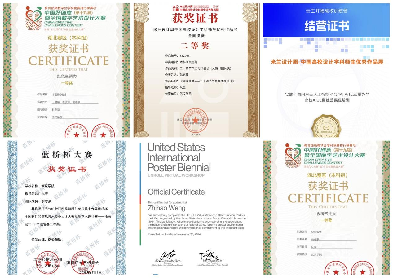 翁志豪积极参与实践,所在大学生科研创新团队深入罗田乡村,开展板栗包装设计调研。他运用专业知识助力农产品品牌化升级,锻炼了实践与团队协作能力,相关成果发表于核心期刊,展现学术功底与社会责任感。