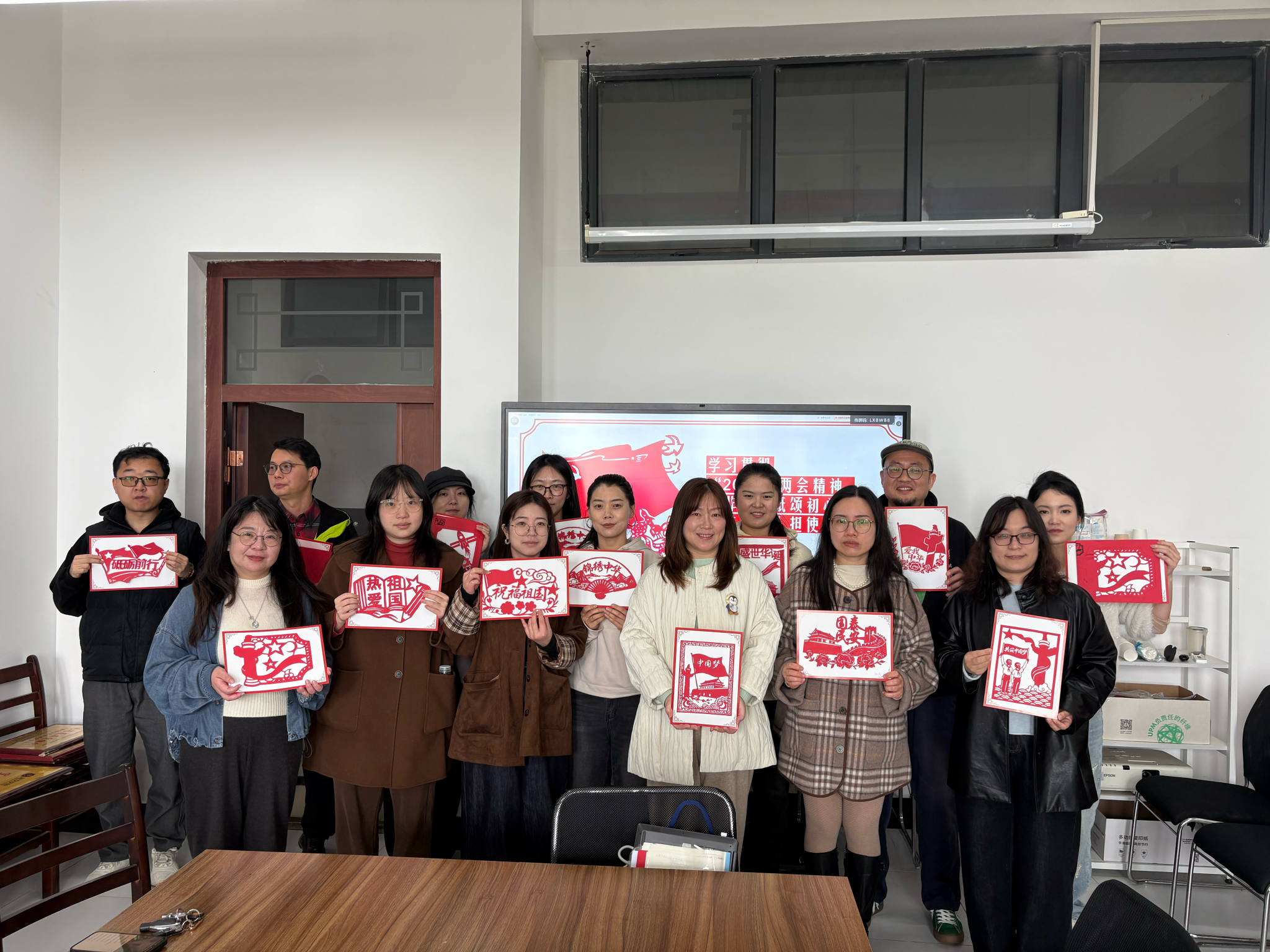 春风化雨润无声,非遗剪纸颂党恩。为深入学习贯彻 2026 年全国两会精神,艺术与传媒学院于3月25日在学院547,以 “2026年两会精神,以非遗剪纸颂初心,凭艺心育人担使命” 为主题,开展了特色党日活动。学院教师第三党支部成员积极参与,与其他党员教师齐聚一堂,以非遗剪纸为媒,将两会精神与艺术育人深度融合,在指尖创作中感悟初心使命,在思想碰撞中凝聚奋进力量。
