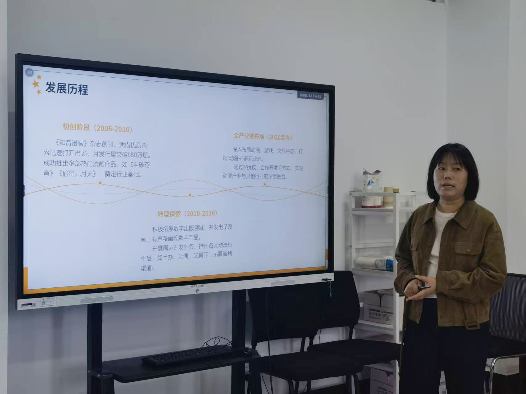 湖北知音动漫有限公司余莹琳总监介绍了企业的发展历程、核心业务及人才需求方向,对兼具创意素养与实践能力的专业人才有着迫切需求。她表示了企业高度重视与高校的合作,希望通过此次实习合作为学生提供真实的行业实践场景,同时也为企业储备优质人才。